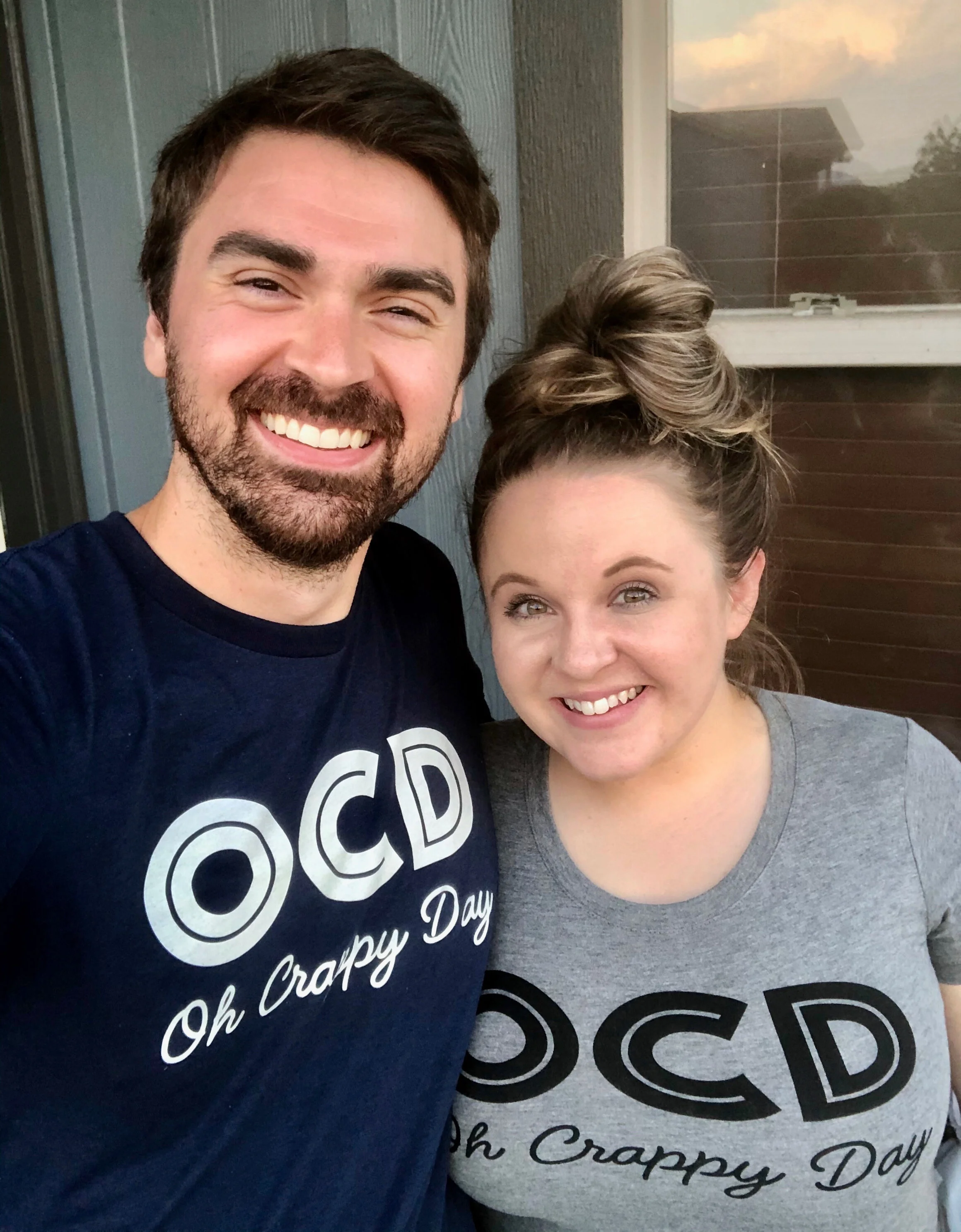Jordan Estes, our lead actor, and Lindsey Lee, his real-life leading lady, model our Oh Crappy Day t-shirts.